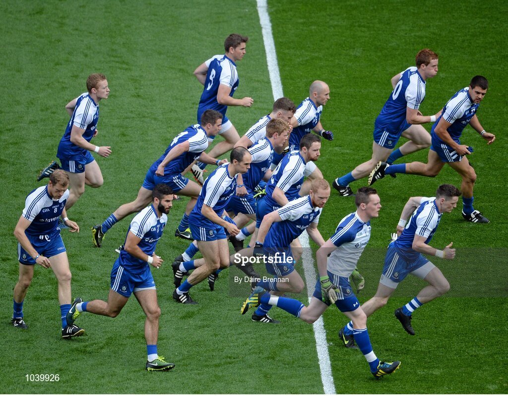 8 August 2015; The Monaghan team break away from the team photo. GAA Football All-Ireland Senior Championship Quarter-Final, Monaghan v Tyrone. Croke Park, Dublin. Picture credit: Dáire Brennan / SPORTSFILE
