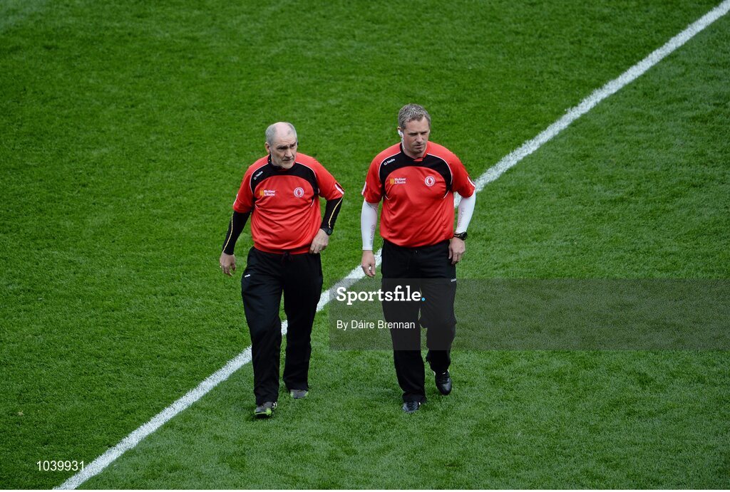 8 August 2015; Tyrone manager Mickey Harte and selector Gavin Devlin. GAA Football All-Ireland Senior Championship, Quarter-Final, Monaghan v Tyrone. Croke Park, Dublin. Picture credit: Dáire Brennan / SPORTSFILE