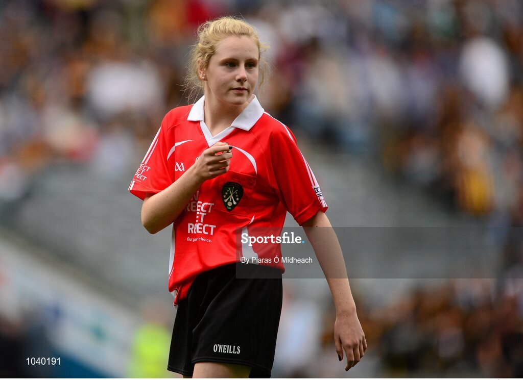 9 August 2015; Referee Sarah Maher, from St. Mary's NS, Ballygunner, Waterford, during the Cumann na mBunscol INTO Respect Exhibition Go Games 2015 at Kilkenny v Waterford - GAA Hurling All-Ireland Senior Championship Semi-Final. Croke Park, Dublin. Picture credit: Piaras Ó Mídheach / SPORTSFILE