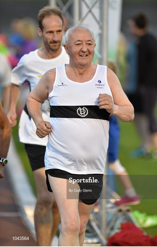 18 August 2015; Frank Greally, who set a record for the 10,000M 45 years ago on this day, begins the final lap around Morton Stadium during his run of 30.17 - the record time set on the night. Frank Greally's Gratitude Run. Morton Stadium, Dublin. Picture credit: Cody Glenn / SPORTSFILE