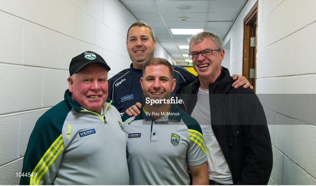 23 August 2015; Joe Brolly with Kerry 'kitmen' Vincent Linnane, Niall 'Botty' O'Callaghan and Jason McGahan before the kitmen prepared the Kerry dressing room. GAA Football All-Ireland Senior Championship, Semi-Final, Kerry v Tyrone. Croke Park, Dublin. Picture credit: Ray McManus / SPORTSFILE