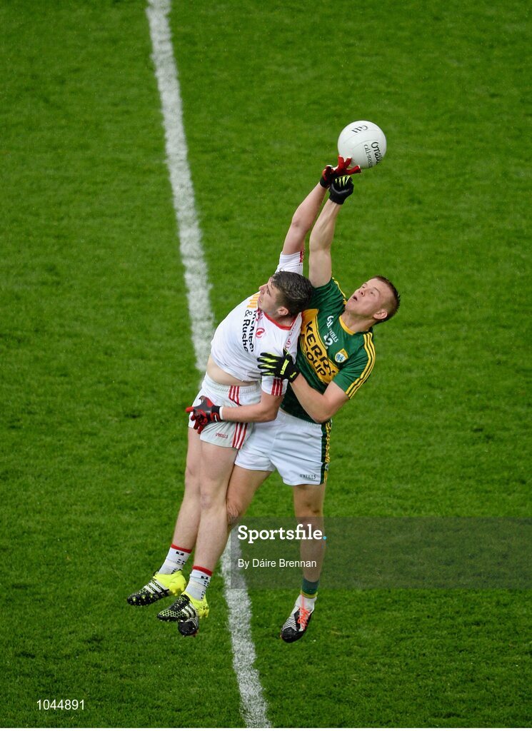 23 August 2015; Fionn Fitzgerald, Kerry, in action against Connor McAliskey, Tyrone. GAA Football All-Ireland Senior Championship, Semi-Final, Kerry v Tyrone. Croke Park, Dublin. Picture credit: Dáire Brennan / SPORTSFILE