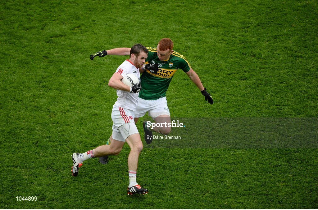 23 August 2015; Justin McMahon, Tyrone, in action against Johnny Buckley, Kerry. GAA Football All-Ireland Senior Championship, Semi-Final, Kerry v Tyrone. Croke Park, Dublin. Picture credit: Dáire Brennan / SPORTSFILE