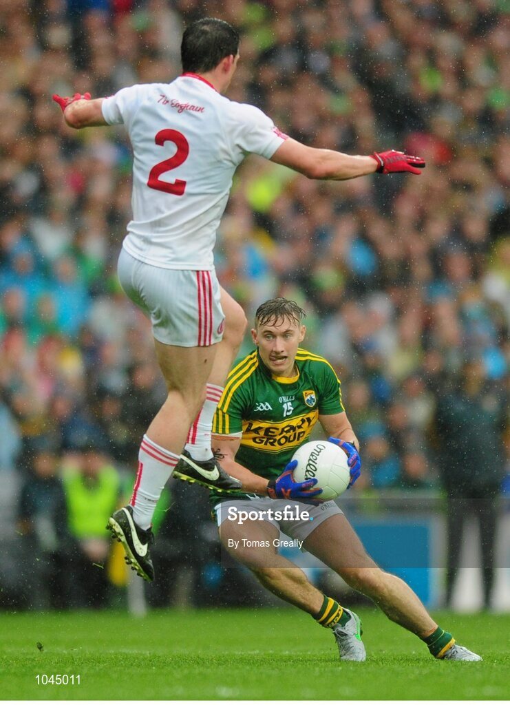 23 August 2015; James O'Donoghue, Kerry, in action against Aidan McCrory, Tyrone. GAA Football All-Ireland Senior Championship, Semi-Final, Kerry v Tyrone. Croke Park, Dublin. Picture credit: Tomas Greally / SPORTSFILE