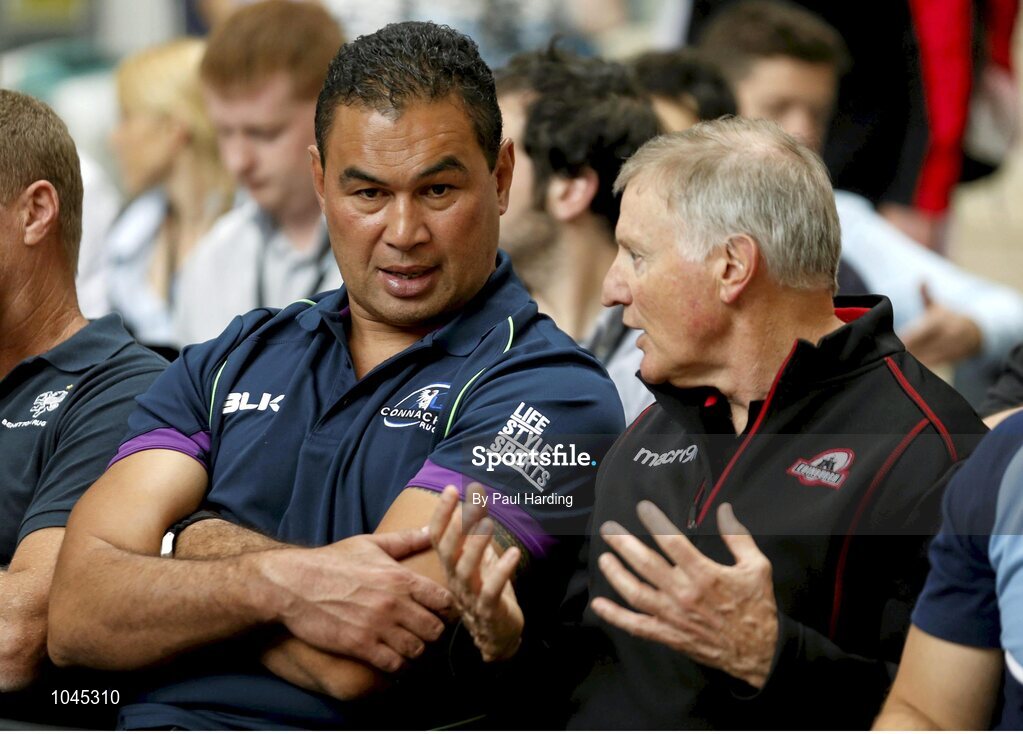 24 August 2015: Pictured are Connacht head coach Pat Lam, left, and Edinburgh head coach Alan Solomon in attendance at the Guinness PRO12 2015/16 Season Launch. Diageo HQ, Lakeside Drive, Park Royal, London, England. Picture credit: Paul Harding / SPORTSFILE