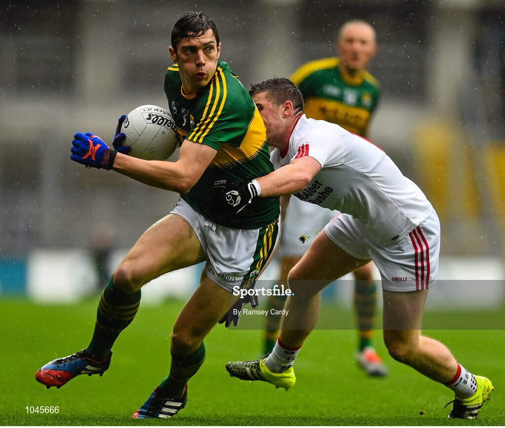 23 August 2015; David Moran, Kerry, in action against Connor McAliskey, Tyrone. GAA Football All-Ireland Senior Championship, Semi-Final, Kerry v Tyrone. Croke Park, Dublin. Picture credit: Ramsey Cardy / SPORTSFILE