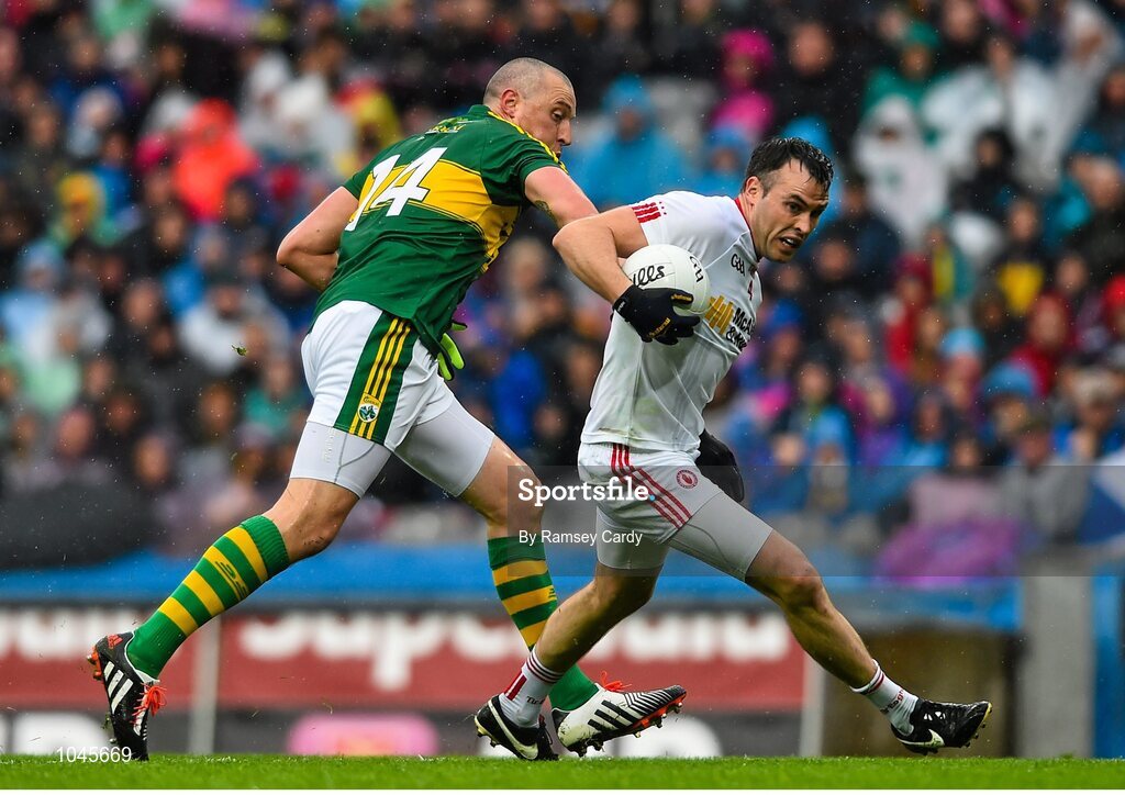 23 August 2015; Cathal McCarron, Tyrone, in action against Kieran Donaghy, Kerry. GAA Football All-Ireland Senior Championship, Semi-Final, Kerry v Tyrone. Croke Park, Dublin. Picture credit: Ramsey Cardy / SPORTSFILE