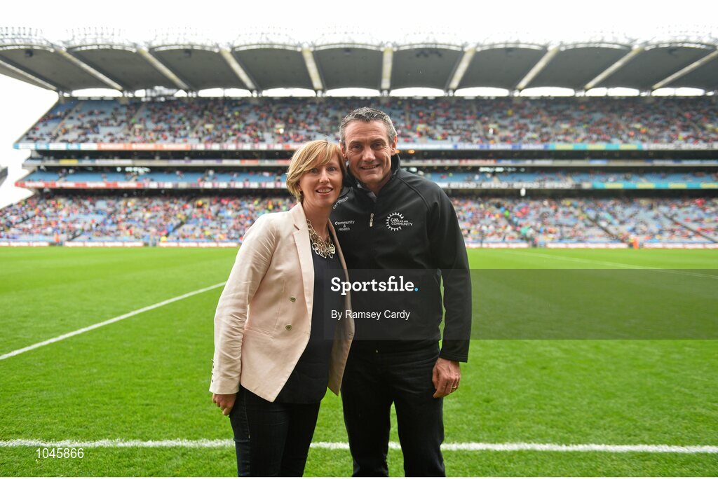 23 August 2015; Olive Loughnane and Ciaran McLaughlin, Chair of the GAA National Health and Wellbeing Committee. GAA Football All-Ireland Senior Championship, Semi-Final, Kerry v Tyrone. Croke Park, Dublin. Picture credit: Ramsey Cardy / SPORTSFILE