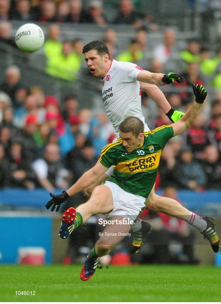 23 August 2015; Stephen O'Brien, Kerry, in action against Sean Cavanagh, Tyrone. GAA Football All-Ireland Senior Championship, Semi-Final, Kerry v Tyrone. Croke Park, Dublin. Picture credit: Tomás Greally / SPORTSFILE