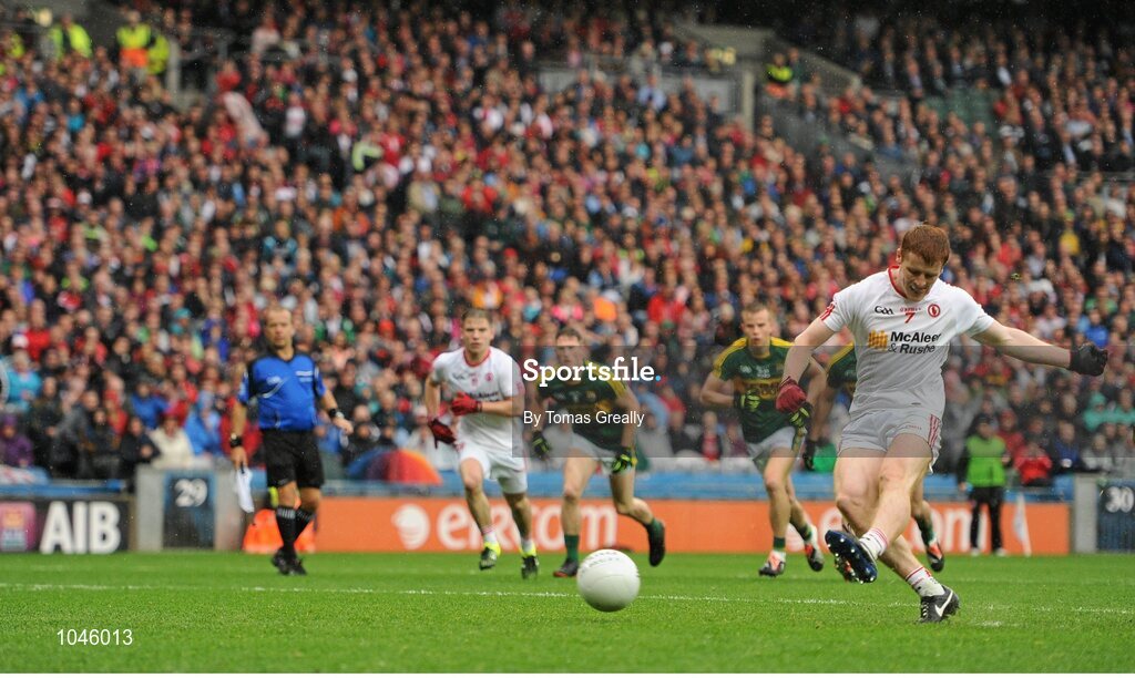 23 August 2015; Peter Harte, Tyrone, scores a penalty. GAA Football All-Ireland Senior Championship, Semi-Final, Kerry v Tyrone. Croke Park, Dublin. Picture credit: Tomás Greally / SPORTSFILE