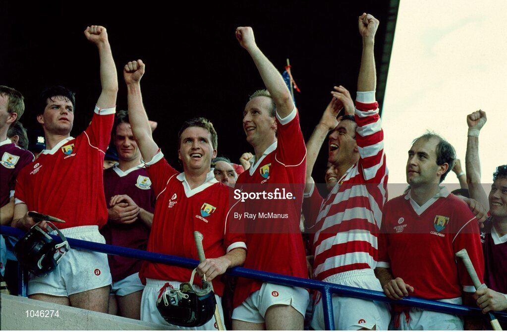 2 September 1990; Cork players celebrate as the Liam MacCarthy is raised after their victory. Cork v Galway, All-Ireland Hurling Final, Croke Park, Dublin. Picture credit: Ray McManus / SPORTSFILE