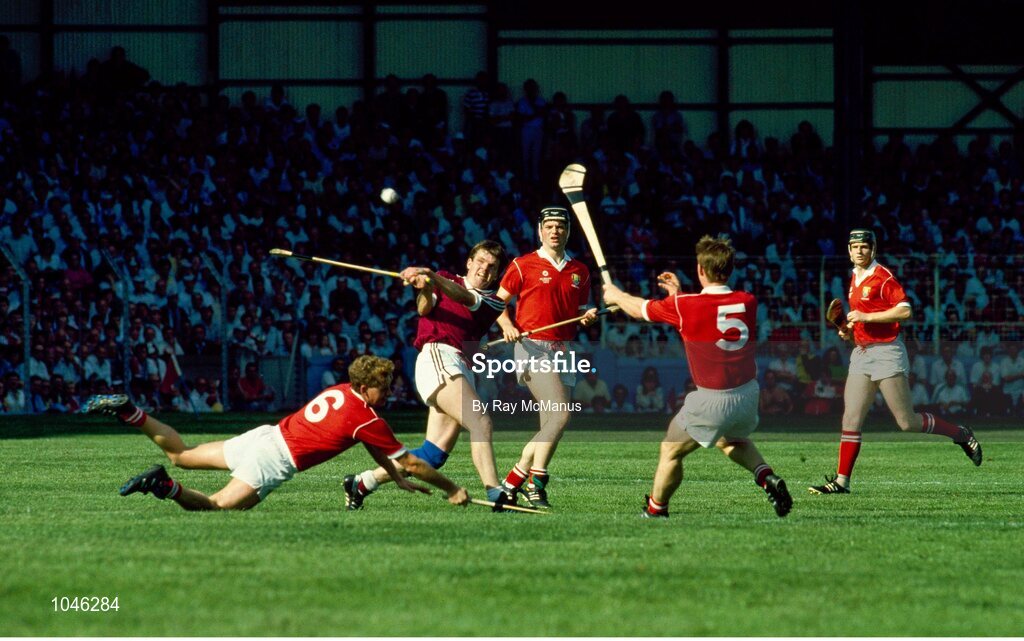 2 September 1990; Martin Naughton of Galway in action against Jim Cashman, 6, and Seánie McCarthy, 5, of Cork during the All-Ireland Senior Hurling Championship Final match between Cork and Galway at Croke Park, Dublin. Photo by Ray McManus/Sportsfile
