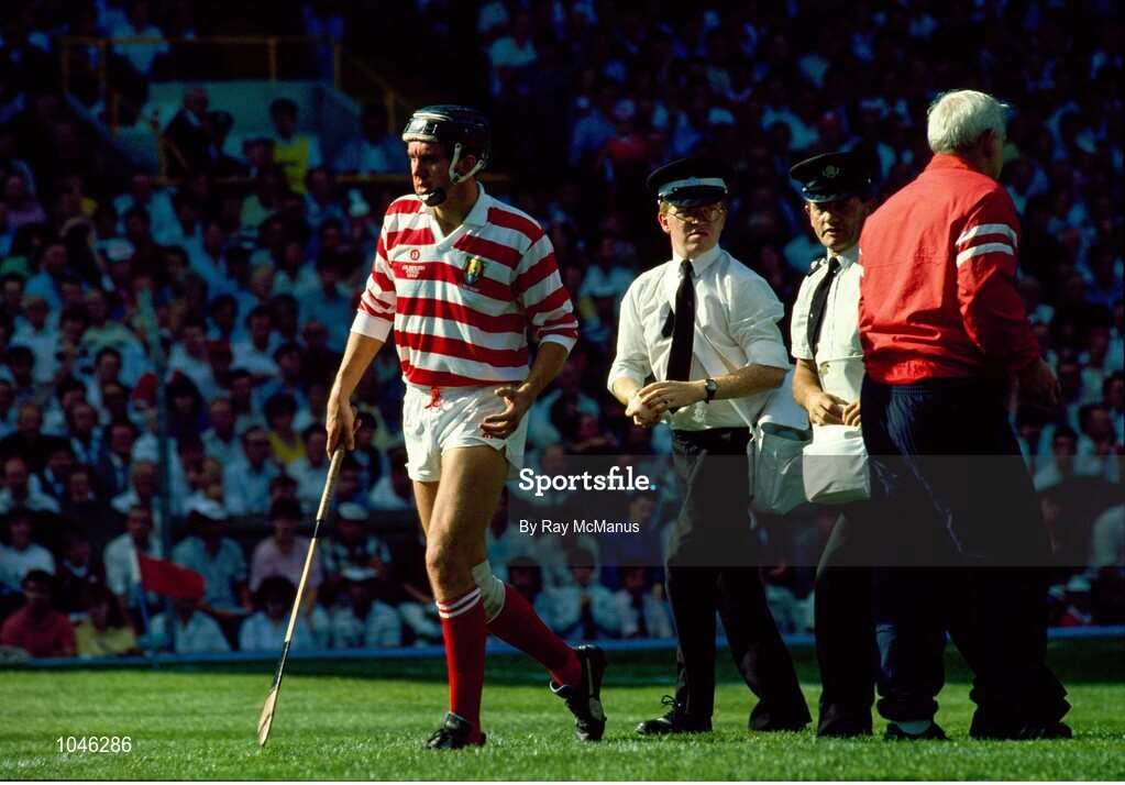 2 September 1990; Cork goalkeeper Ger Cunningham is attended to by medical staff during the All Ireland Hurling Championships Final match between Cork and Galway at Croke Park, Dublin. Photo by Ray McManus/Sportsfile