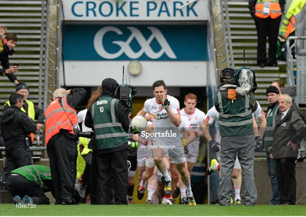 23 August 2015; Sean Cavanagh, Tyrone leading his team out onto the pitch. GAA Football All-Ireland Senior Championship, Semi-Final, Kerry v Tyrone. Croke Park, Dublin. Picture credit: Oliver McVeigh / SPORTSFILE