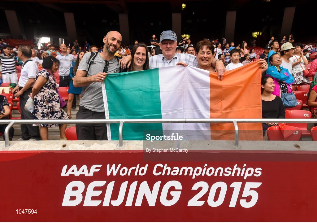 30 August 2015; The Diver family of Belmullet, Co. Mayo, from left, Colm, Grainne, Eddie and Bridie after Sinead Diver representing Australia, finished in 21st place during the Women's Marathon event. IAAF World Athletics Championships Beijing 2015 - Day 9, National Stadium, Beijing, China. Picture credit: Stephen McCarthy / SPORTSFILE