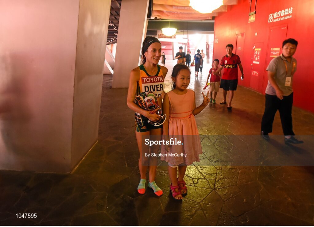30 August 2015; Sinead Diver, from Belmullet, Co. Mayo, representing Australia, with locals following the Women's Marathon event where she finished in 21st place. IAAF World Athletics Championships Beijing 2015 - Day 9, National Stadium, Beijing, China. Picture credit: Stephen McCarthy / SPORTSFILE