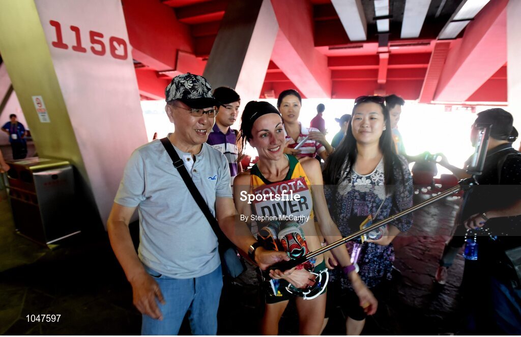 30 August 2015; Sinead Diver, from Belmullet, Co. Mayo, representing Australia, with locals following the Women's Marathon event where she finished in 21st place. IAAF World Athletics Championships Beijing 2015 - Day 9, National Stadium, Beijing, China. Picture credit: Stephen McCarthy / SPORTSFILE