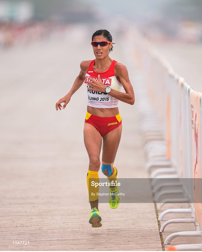 30 August 2015; Alessandra Aguilar of Spain during the Women's Marathon event. IAAF World Athletics Championships Beijing 2015 - Day 9, National Stadium, Beijing, China. Picture credit: Stephen McCarthy / SPORTSFILE