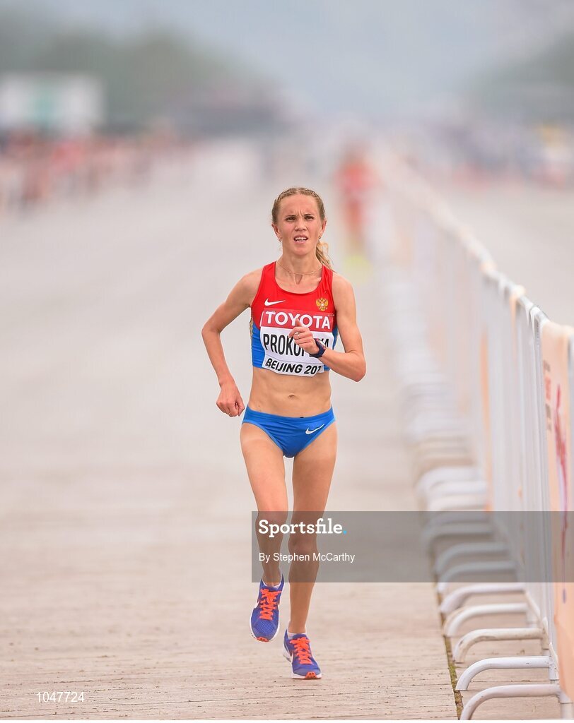 30 August 2015; Alina Prokopeva of Russia during the Women's Marathon event. IAAF World Athletics Championships Beijing 2015 - Day 9, National Stadium, Beijing, China. Picture credit: Stephen McCarthy / SPORTSFILE