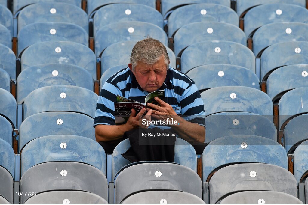 30 August 2015; A Dublin supporter reads his programme before the game. GAA Football All-Ireland Senior Championship, Semi-Final, Dublin v Mayo, Croke Park, Dublin. Picture credit: Ray McManus / SPORTSFILE