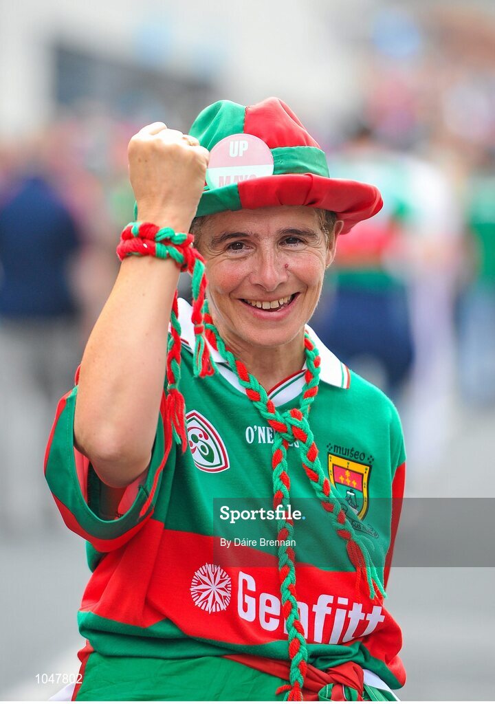 30 August 2015; Angela Mellett, from Shrule, Co. Mayo, on her way to the game. GAA Football All-Ireland Senior Championship, Semi-Final, Dublin v Mayo, Croke Park, Dublin. Picture credit: Dáire Brennan / SPORTSFILE