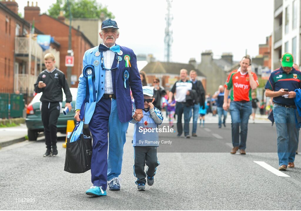 30 August 2015; Dublin supporters Jerry Gowran, left and Jack Gerry, age 3. GAA Football All-Ireland Senior Championship, Semi-Final, Dublin v Mayo, Croke Park, Dublin. Picture credit: Ramsey Cardy / SPORTSFILE