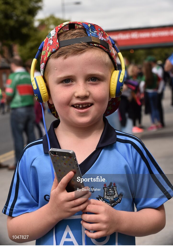 30 August 2015; Dublin supporter Oisin Rahilll McLaughlin, age 6, from Finglas, Co. Dublin. GAA Football All-Ireland Senior Championship, Semi-Final, Dublin v Mayo, Croke Park, Dublin. Picture credit: David Maher / SPORTSFILE