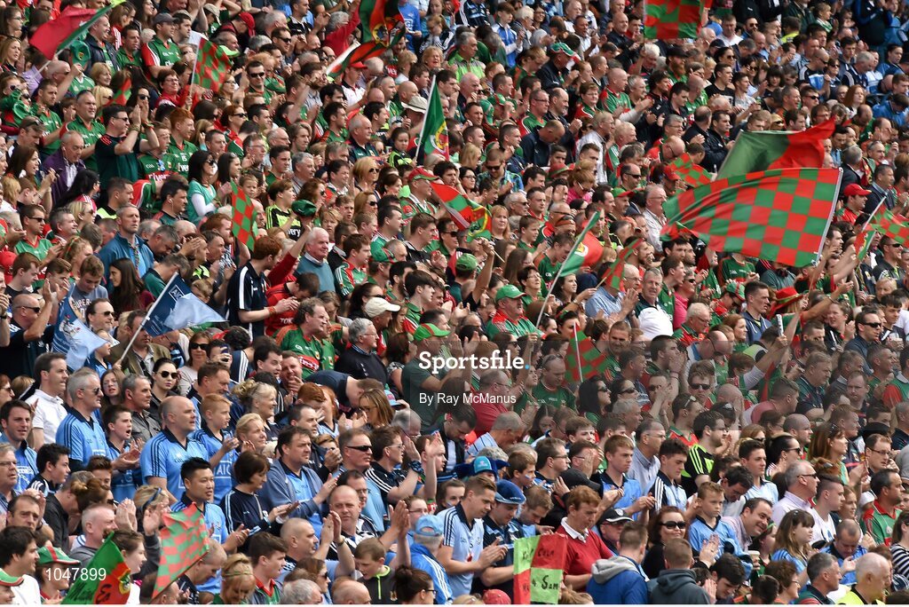 30 August 2015; Mayo and Dublin supporters in the Cusack Stand. GAA Football All-Ireland Senior Championship, Semi-Final, Dublin v Mayo, Croke Park, Dublin. Picture credit: Ray McManus / SPORTSFILE