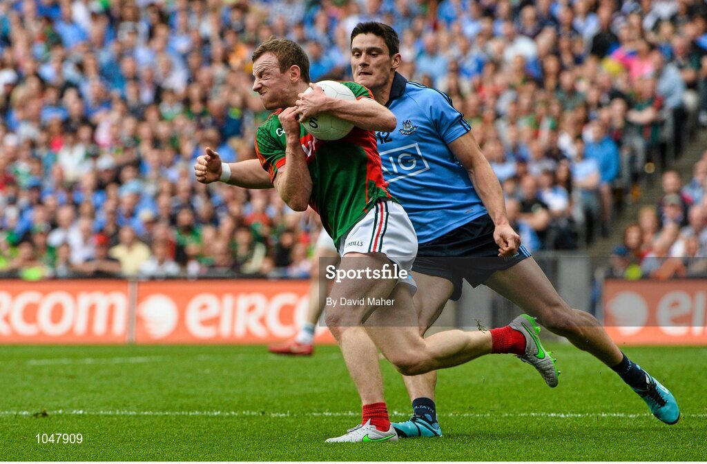 30 August 2015; Colm Boyle, Mayo, in action against Diarmuid Connolly, Dublin. GAA Football All-Ireland Senior Championship, Semi-Final, Dublin v Mayo, Croke Park, Dublin. Picture credit: David Maher / SPORTSFILE