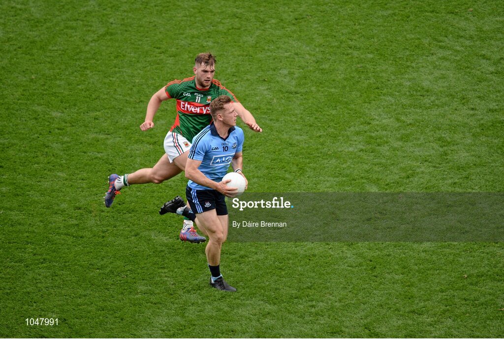 30 August 2015; Paul Flynn, Dublin, in action against Aidan O'Shea, Mayo. GAA Football All-Ireland Senior Championship, Semi-Final, Dublin v Mayo, Croke Park, Dublin. Picture credit: Dáire Brennan / SPORTSFILE