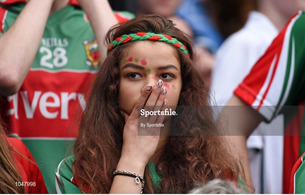 30 August 2015; A Mayo fan late on in the game. GAA Football All-Ireland Senior Championship, Semi-Final, Dublin v Mayo, Croke Park, Dublin. Photo by Sportsfile