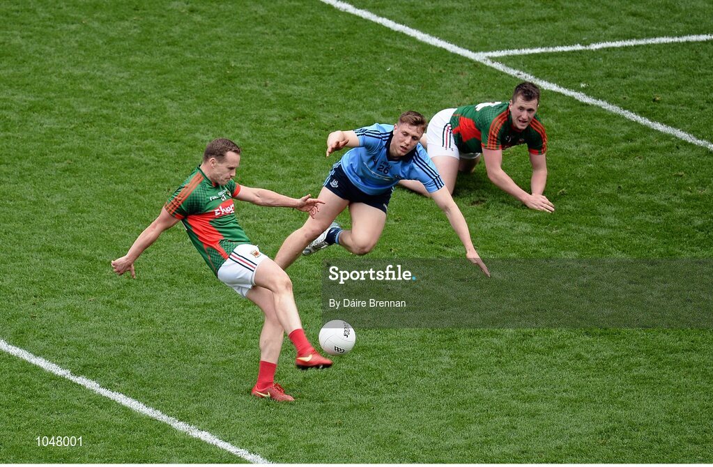 30 August 2015; Andy Moran, Mayo, scores the equalising point near the end of the game. GAA Football All-Ireland Senior Championship, Semi-Final, Dublin v Mayo, Croke Park, Dublin. Picture credit: Dáire Brennan / SPORTSFILE