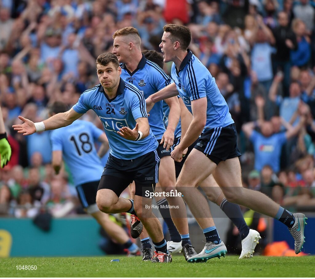 30 August 2015; Kevin McManamon celebrates scoring a goal for Dublin. GAA Football All-Ireland Senior Championship, Semi-Final, Dublin v Mayo, Croke Park, Dublin. Picture credit: Ray McManus / SPORTSFILE