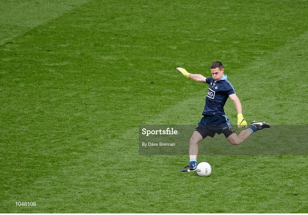 30 August 2015; Stephen Cluxton, Dublin, kicks a free wide near the end of the game. GAA Football All-Ireland Senior Championship, Semi-Final, Dublin v Mayo, Croke Park, Dublin. Picture credit: Dáire Brennan / SPORTSFILE