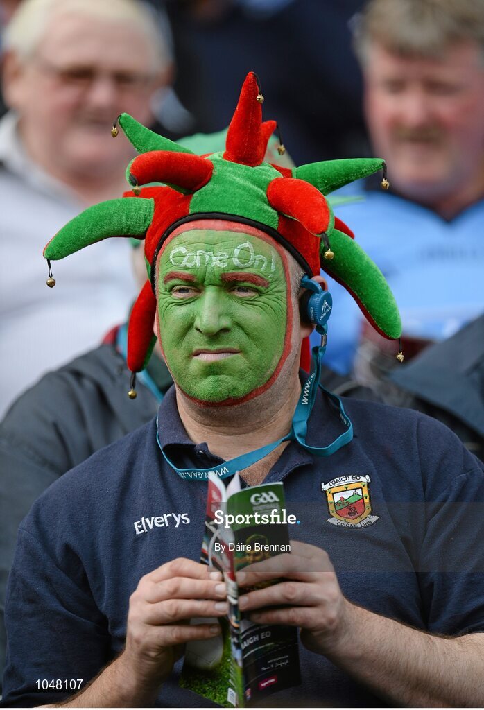 30 August 2015; A Mayo supporter reads his programme in the Hogan Stand before the game. GAA Football All-Ireland Senior Championship, Semi-Final, Dublin v Mayo, Croke Park, Dublin. Picture credit: Dáire Brennan / SPORTSFILE