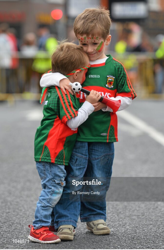 30 August 2015; Mayo supporters Donnacha, right, and Tadhg Judge, from Ballina, ahead of the game. GAA Football All-Ireland Senior Championship, Semi-Final, Dublin v Mayo, Croke Park, Dublin. Picture credit: Ramsey Cardy / SPORTSFILE