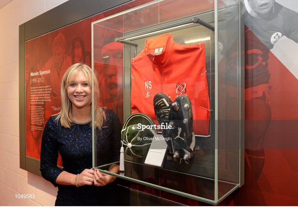 27 August 2015; Emma Spence, sister of Nevin Spence, during the opening of The Nevin Spence Centre. Kingspan Stadium, Ravenhill Park, Belfast, Co. Antrim. Picture credit: Oliver McVeigh / SPORTSFILE