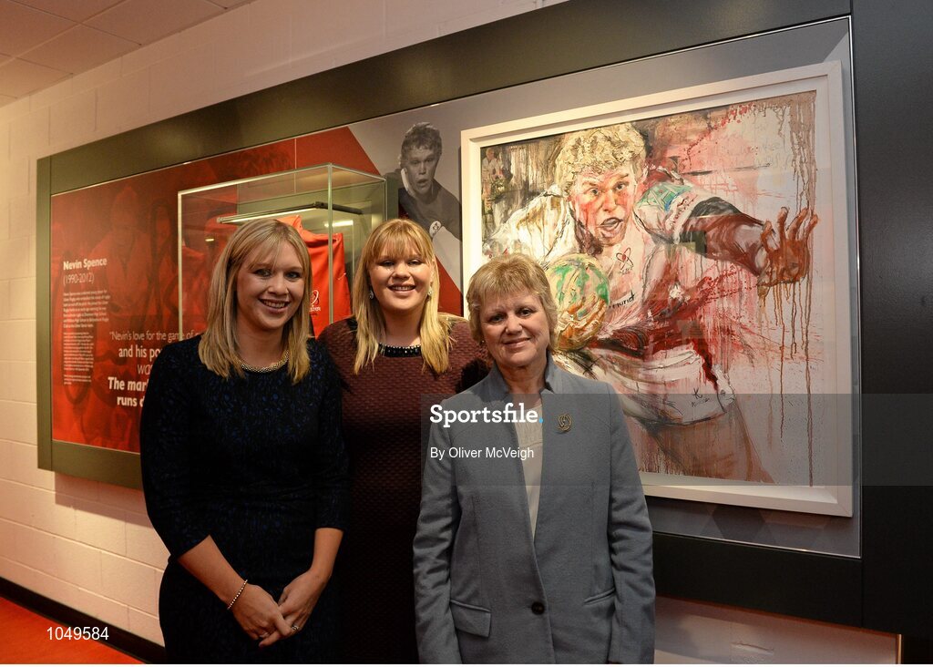 27 August 2015; The Spence family, sisters Emma and Lora, and their mother Essie at the opening of the Nevin Spence Centre. Kingspan Stadium, Ravenhill Park, Belfast, Co. Antrim. Picture credit: Oliver McVeigh / SPORTSFILE