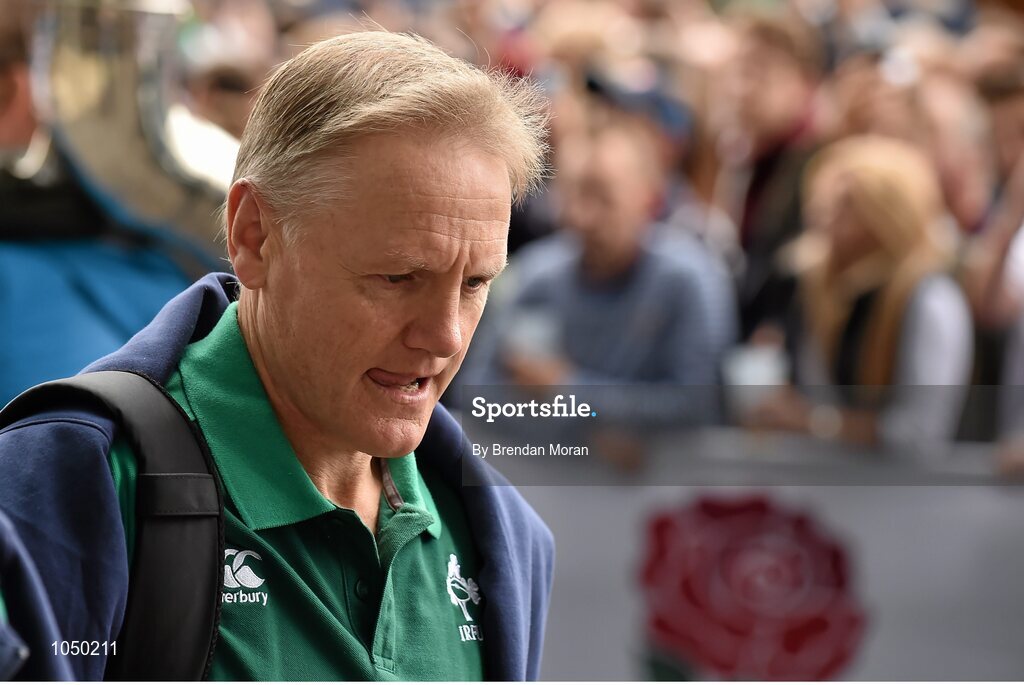 5 September 2015; Ireland head coach Joe Schmidt arrives ahead of the game. Rugby World Cup Warm-Up Match, England v Ireland. Twickenham Stadium, London, England. Picture credit: Brendan Moran / SPORTSFILE