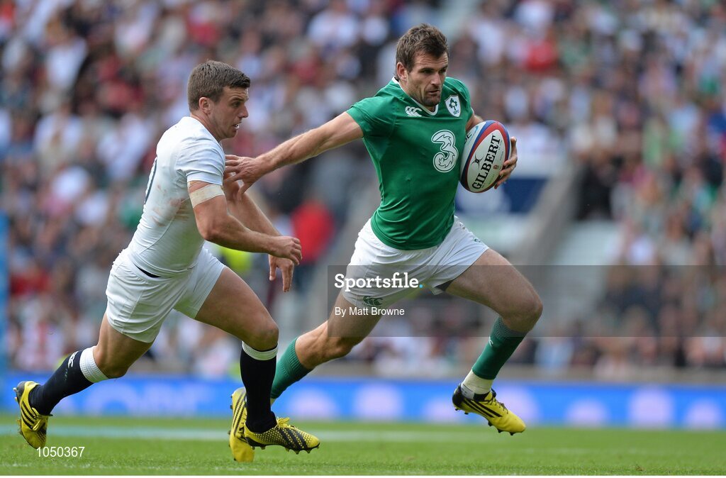 5 September 2015; Jared Payne, Ireland, is tackled by George Ford, England. Rugby World Cup Warm-Up Match, England v Ireland. Twickenham Stadium, London, England. Picture credit: Matt Browne / SPORTSFILE