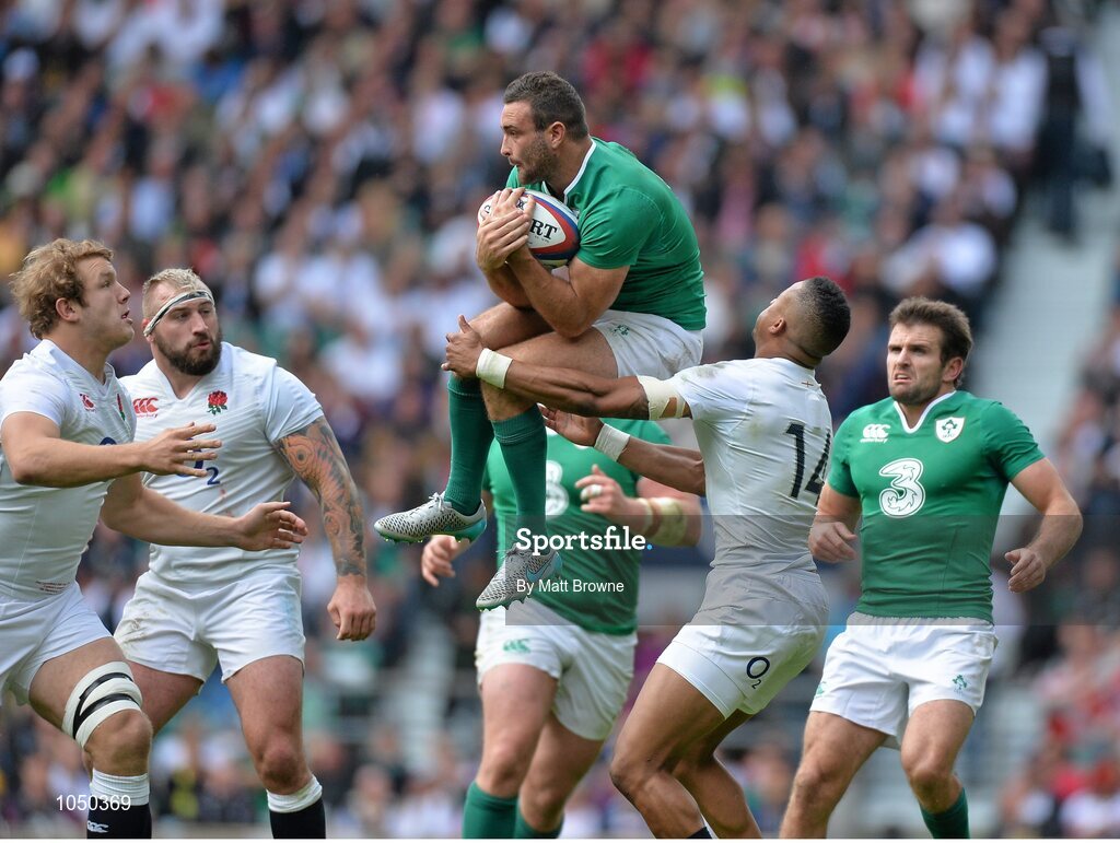5 September 2015; Dave Kearney, Ireland, is tackled by Anthony Watson, England. Rugby World Cup Warm-Up Match, England v Ireland. Twickenham Stadium, London, England. Picture credit: Matt Browne / SPORTSFILE