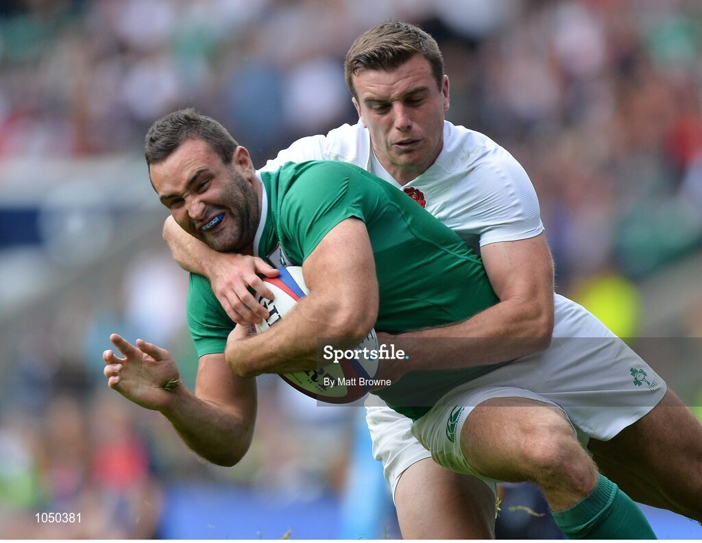 5 September 2015; Dave Kearney, Ireland, is tackled by George Ford, England. Rugby World Cup Warm-Up Match, England v Ireland. Twickenham Stadium, London, England. Picture credit: Matt Browne / SPORTSFILE