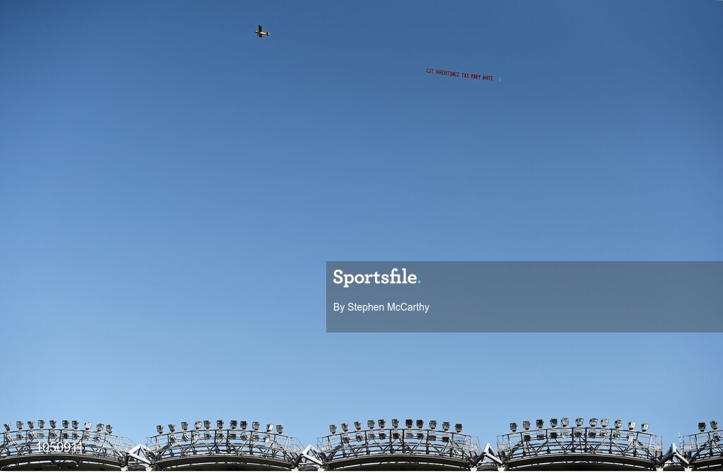 5 September 2015; A plane carrying a message flies over Croke Park ahead of the game. GAA Football All-Ireland Senior Championship Semi-Final Replay, Dublin v Mayo. Croke Park, Dublin. Picture credit: Stephen McCarthy / SPORTSFILE