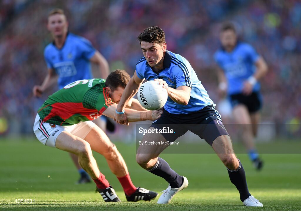 5 September 2015; Bernard Brogan, Dublin, in action against Chris Barrett, Mayo. GAA Football All-Ireland Senior Championship Semi-Final Replay, Dublin v Mayo. Croke Park, Dublin. Picture credit: Stephen McCarthy / SPORTSFILE
