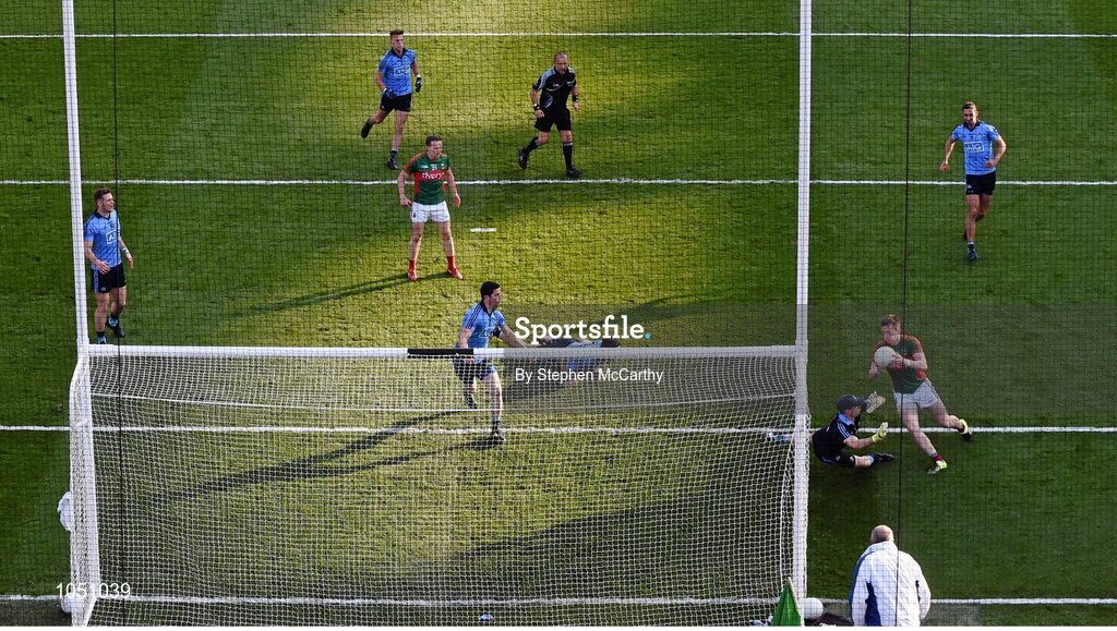 5 September 2015; Cillian O'Connor, Mayo, goes around Dublin goalkeeper Stephen Cluxton to score his side's goal. GAA Football All-Ireland Senior Championship Semi-Final Replay, Dublin v Mayo. Croke Park, Dublin. Picture credit: Stephen McCarthy / SPORTSFILE