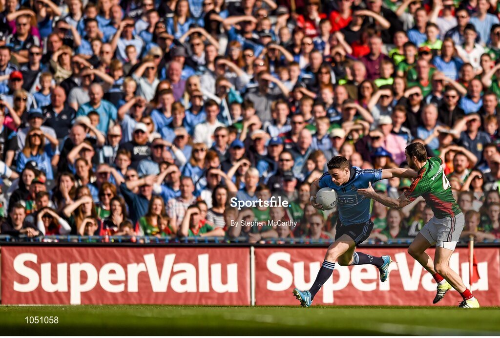 5 September 2015; Paddy Andrews, Dublin, in action against Keith Higgins, Mayo. GAA Football All-Ireland Senior Championship Semi-Final Replay, Dublin v Mayo. Croke Park, Dublin. Picture credit: Stephen McCarthy / SPORTSFILE