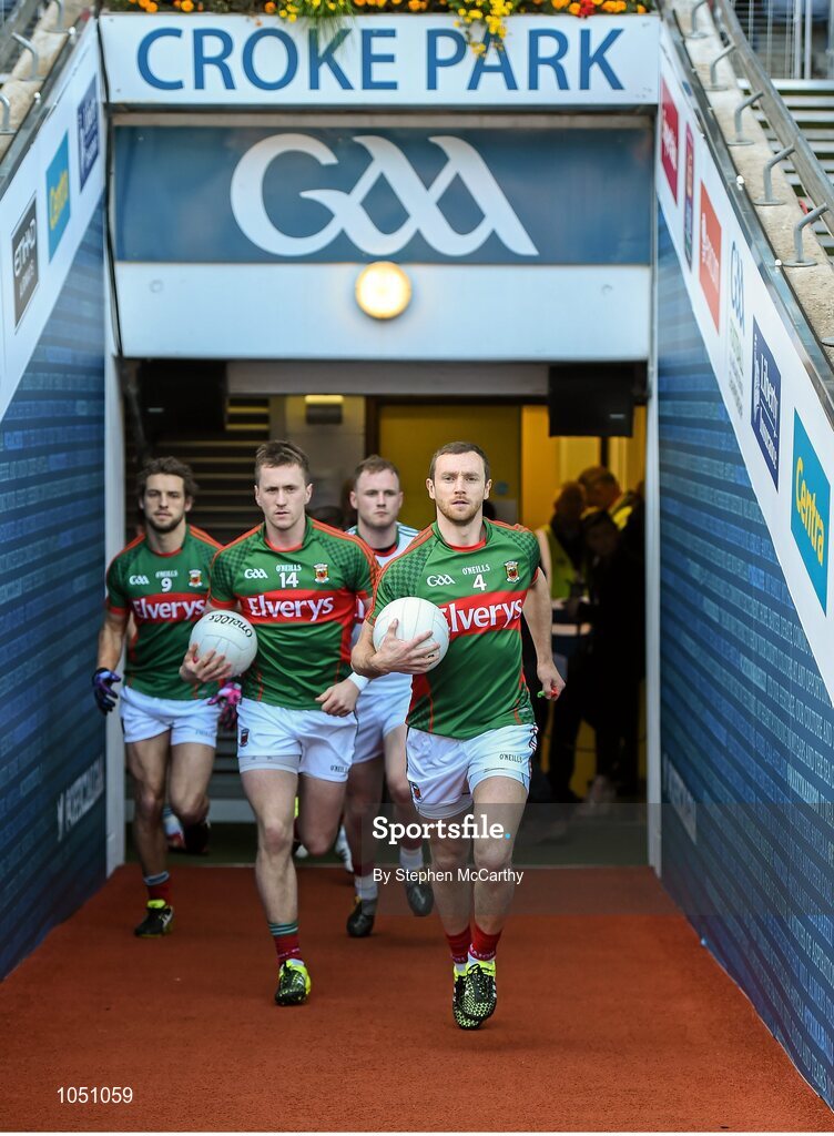 5 September 2015; Keith Higgins, Mayo, leads out the Mayo team ahead of the game. GAA Football All-Ireland Senior Championship Semi-Final Replay, Dublin v Mayo. Croke Park, Dublin. Picture credit: Stephen McCarthy / SPORTSFILE