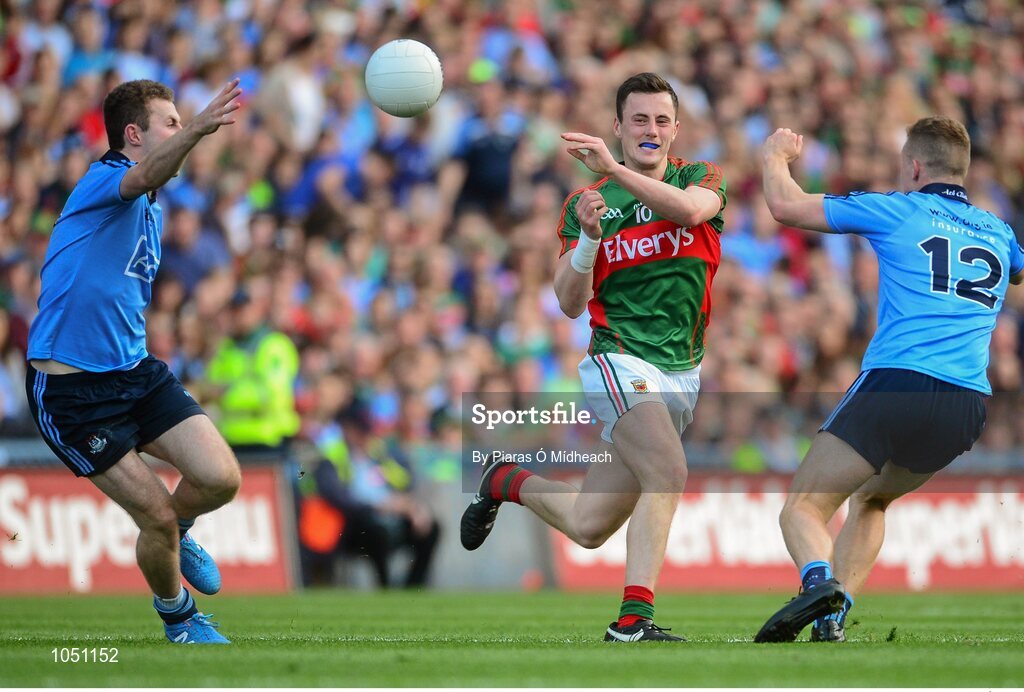 5 September 2015; Diarmuid O'Connor, Mayo, in action against Jack McCaffrey, and Ciarán Kilkenny, right, Dublin. GAA Football All-Ireland Senior Championship Semi-Final Replay, Dublin v Mayo. Croke Park, Dublin. Picture credit: Piaras Ó Mídheach / SPORTSFILE