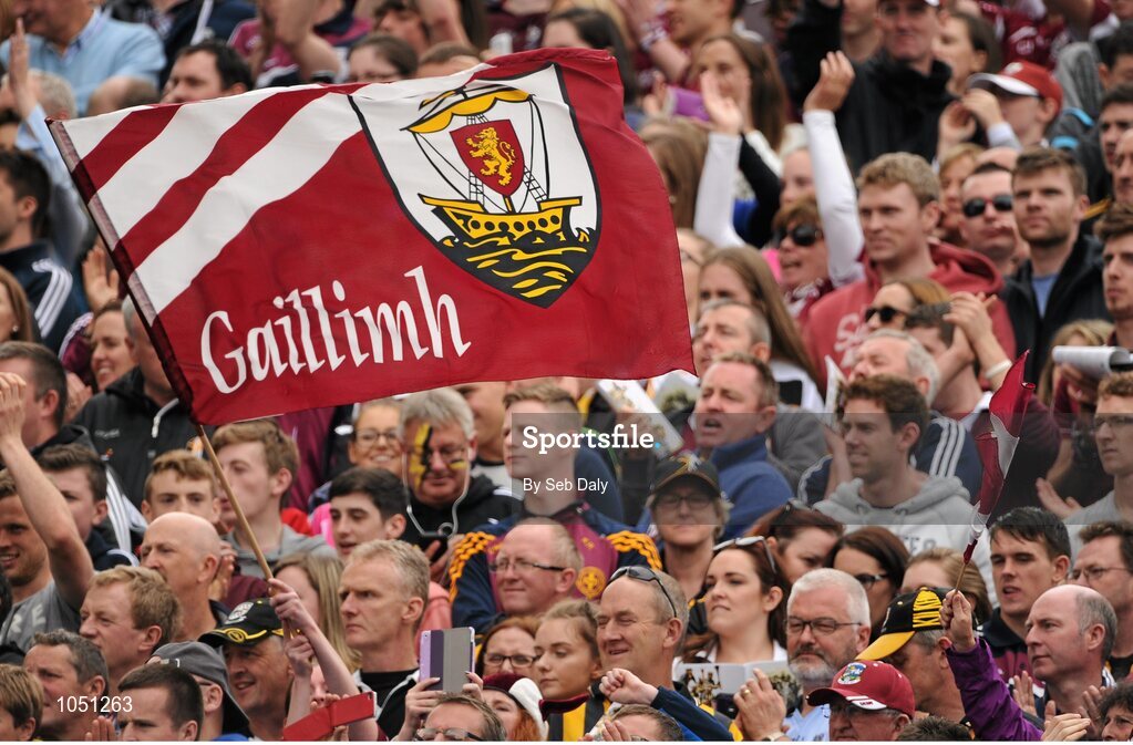 6 September 2015; A fan waves a Galway flag as the teams enter the field of play. GAA Hurling All-Ireland Senior Championship Final, Kilkenny v Galway, Croke Park, Dublin. Picture credit: Seb Daly / SPORTSFILE