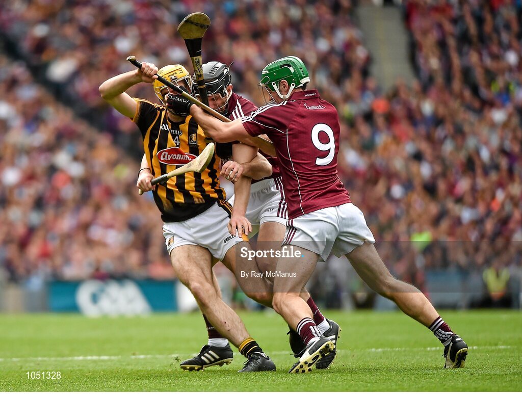 6 September 2015; Colin Fennelly, Kilkenny, is tackled by Aidan Harte and David Burke, right, Galway. GAA Hurling All-Ireland Senior Championship Final, Kilkenny v Galway, Croke Park, Dublin. Picture credit: Ray McManus / SPORTSFILE
